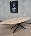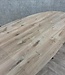 Erg mooie grote eettafel van massief eiken te koop. Gefreesd in de vorm ovaal.