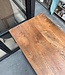 Gave sidetable te koop. Blad is gemaakt van mango hout, en het frame is zwart staal.